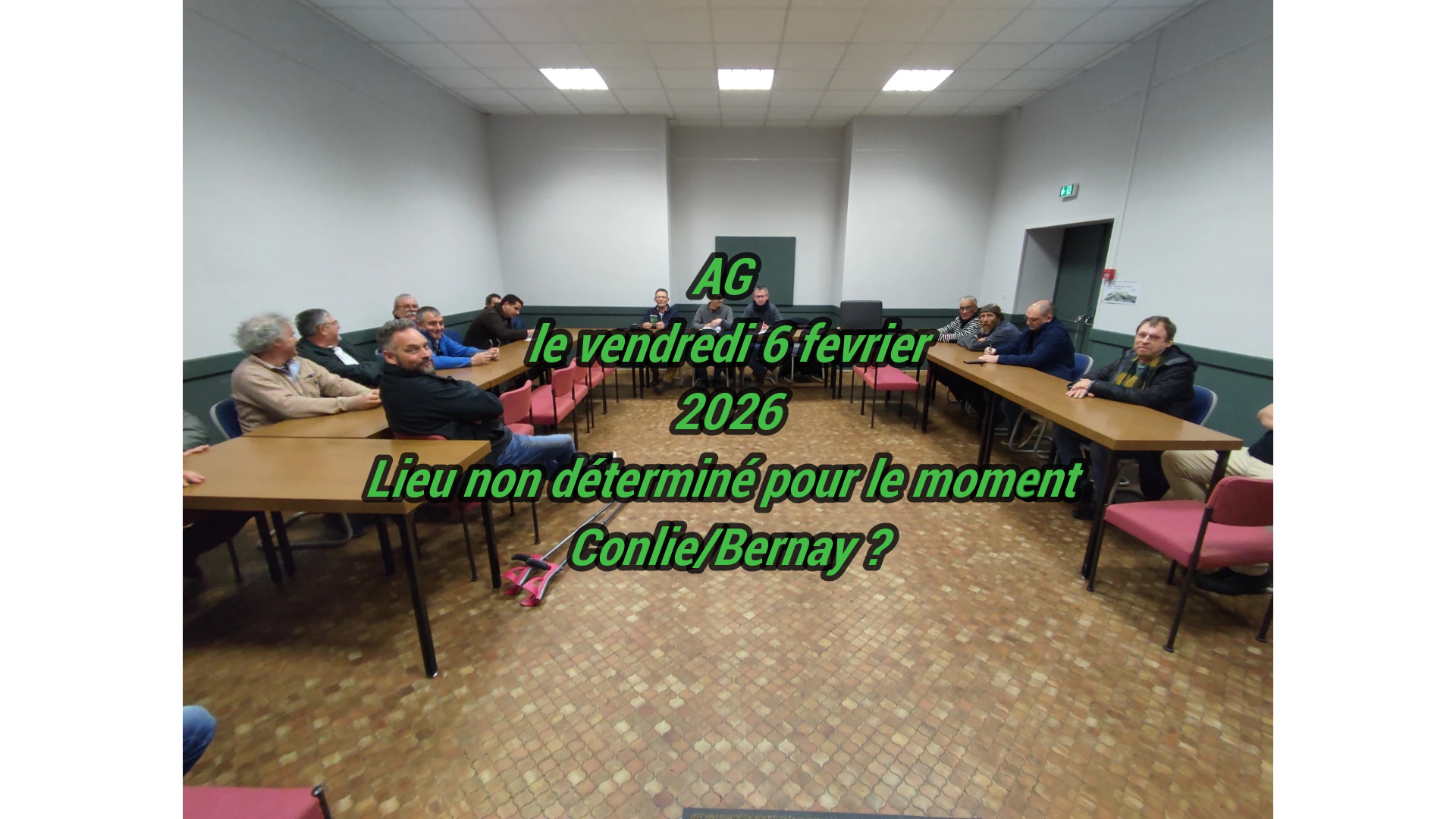 Notre assemblée générale aura lieu le 21 février 2025 à 19H30 salle des associations à Conlie 72240L'assemblée sera suivie d'un verre de l'amitié.